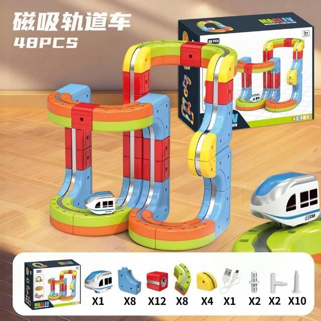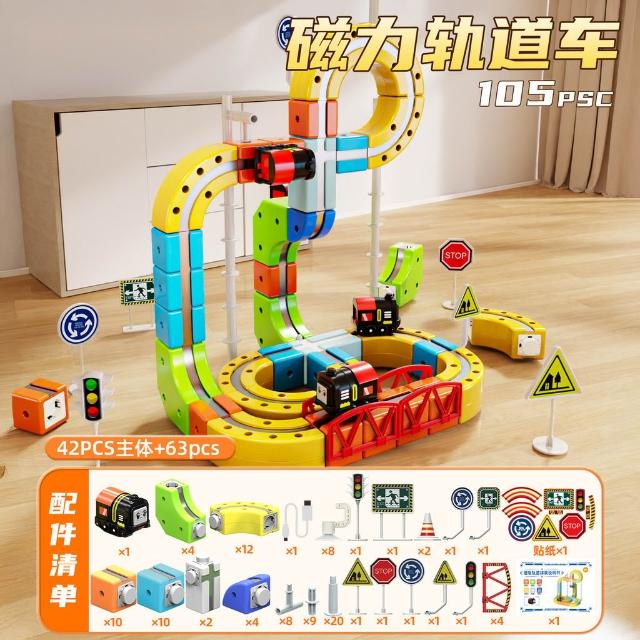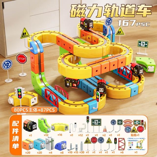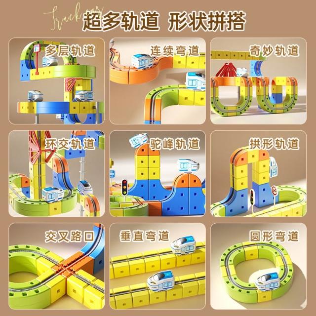 磁力軌道車百變立體積木兒童電動火車高鐵列車磁吸懸浮軌道車玩具
