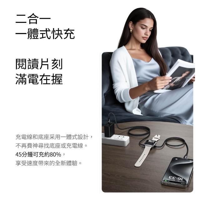 grantclassic一線升機 OmniaLine WatchDuo Apple Watch 二合一 傳輸線-黑色
