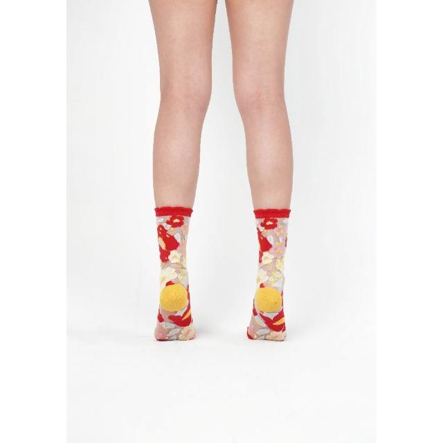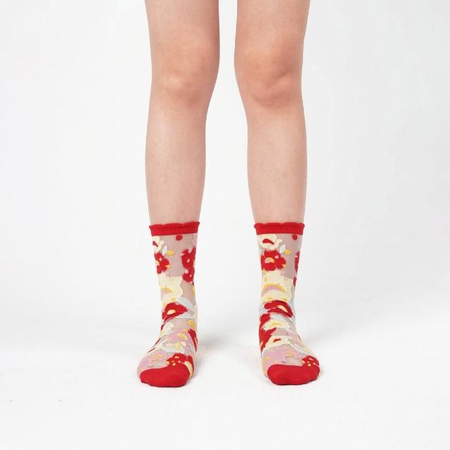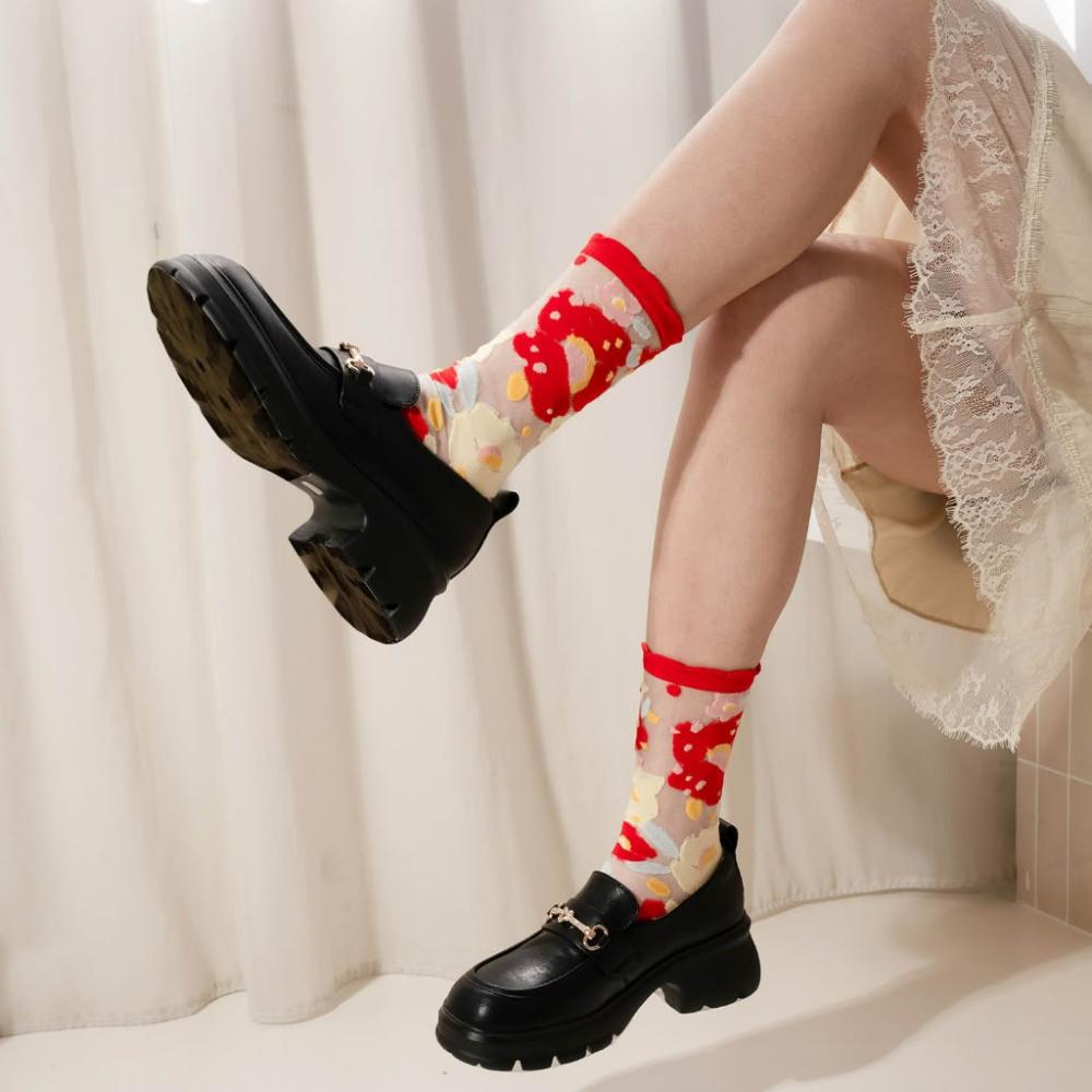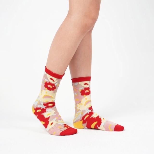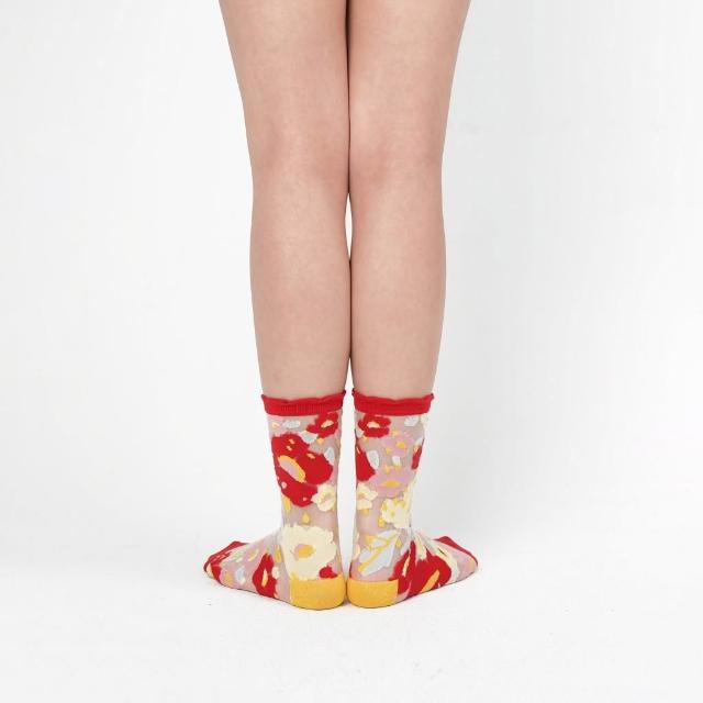 PAPERSELF 花園系列|蘋果紅- 小花透紗中筒襪
