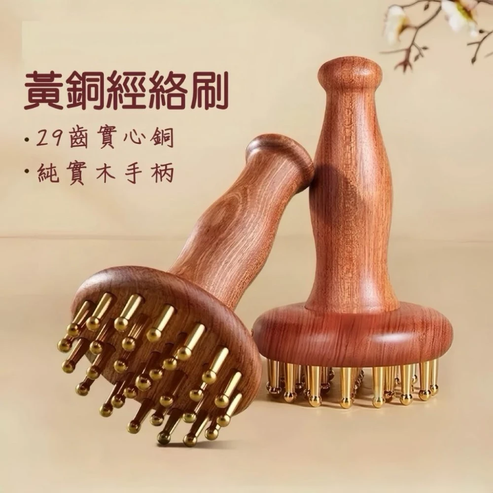 花梨木經絡按摩刷 黃銅經絡刷 經絡刷 29齒黃銅刷 長柄經絡刷 全身按摩 手臂按摩 肚子按摩 黃銅刷穿透