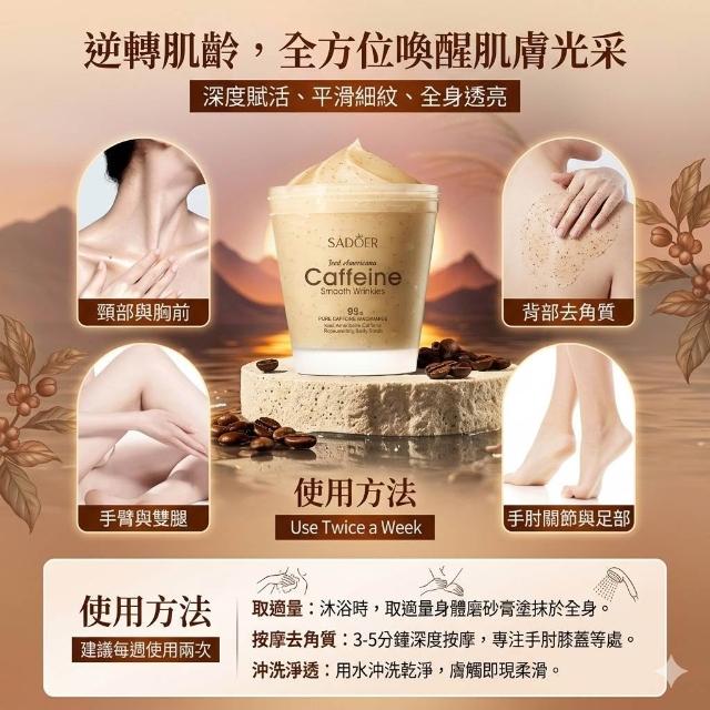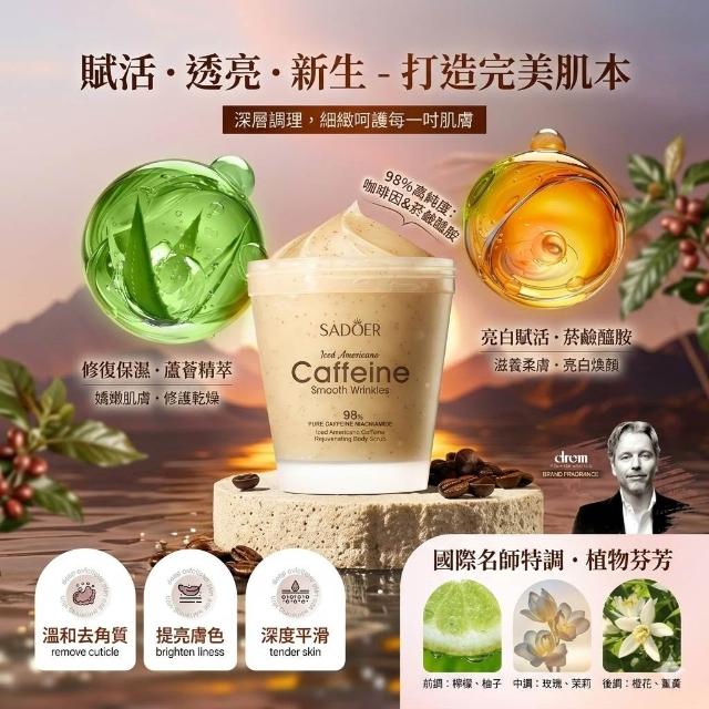 SADOER菸鹼胺酸咖啡身體磨砂膏 去角質磨砂膏 身體去角質 美白保濕磨砂膏 嫩敷舒緩 身體美白 200g