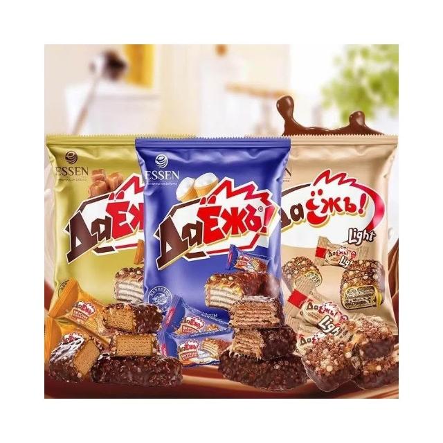 Lucky 俄羅斯進口 巧克力威化餅 威化餅 奧特焦糖巧剋力 阿孔特餅幹花生夾心威化瓦夫餅零食