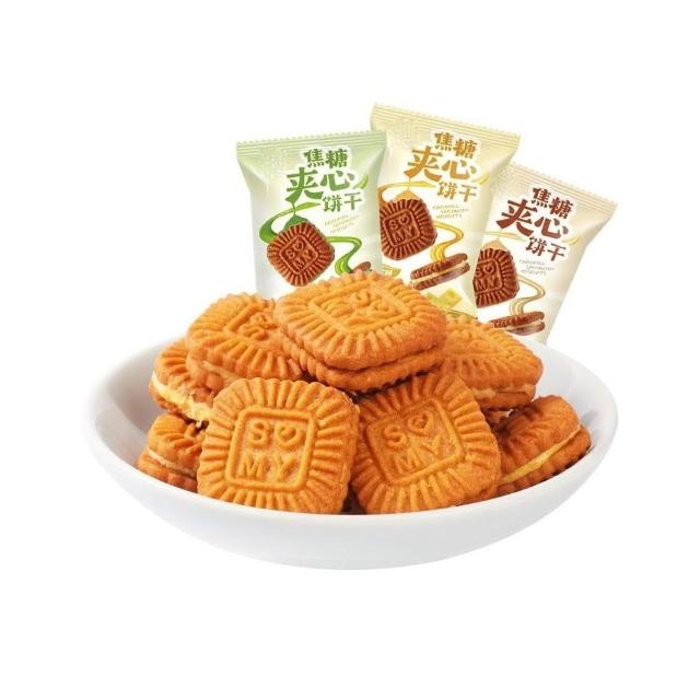 Lucky焦糖夾心餅乾芝士抹茶多口味老式小餅乾年貨零食品整箱懷舊休閒