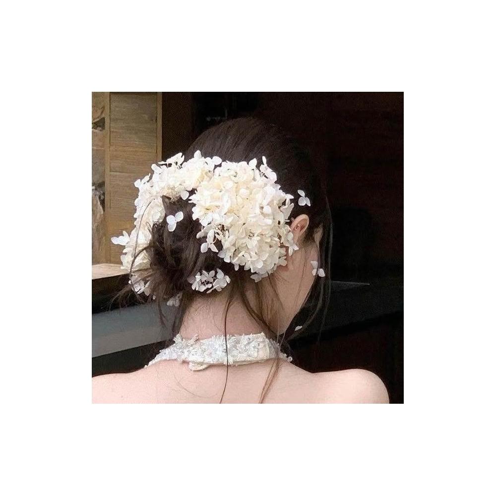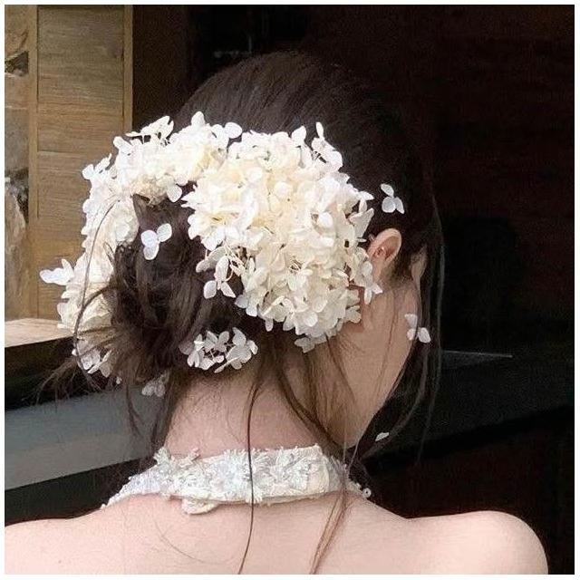 新款新娘頭飾超仙粉白色永生花髮飾森系鮮花造型頭花