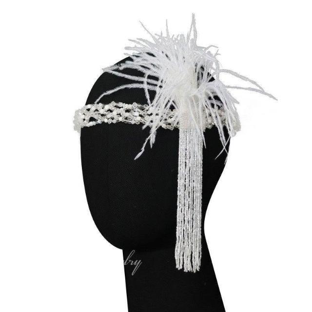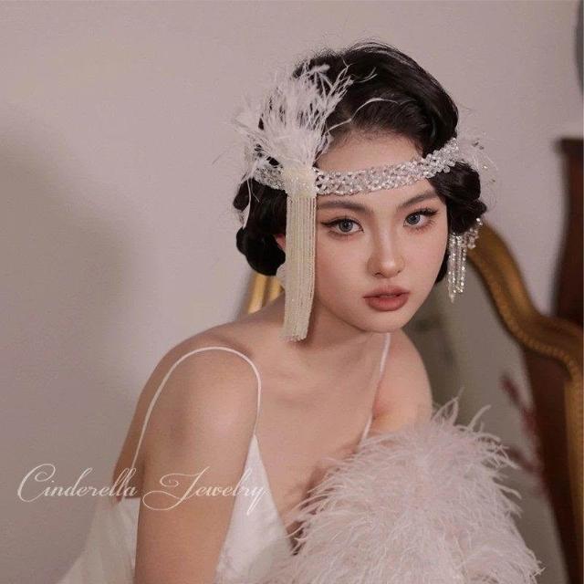 串珠流蘇羽毛髮帶復古蓋茨比頭飾新娘結婚髮飾