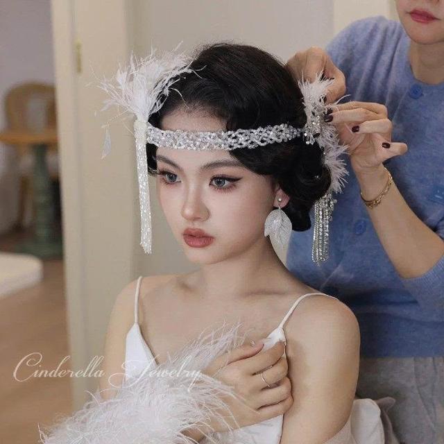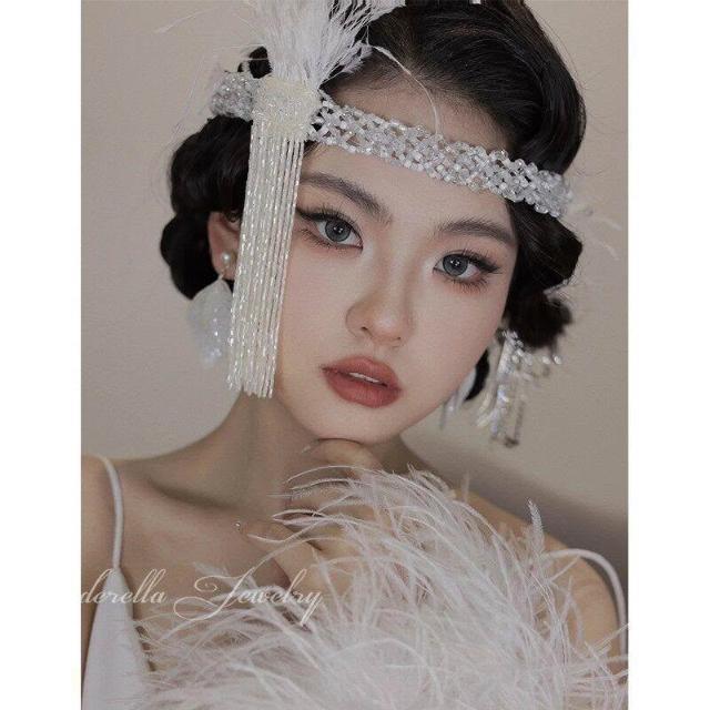串珠流蘇羽毛髮帶復古蓋茨比頭飾新娘結婚髮飾