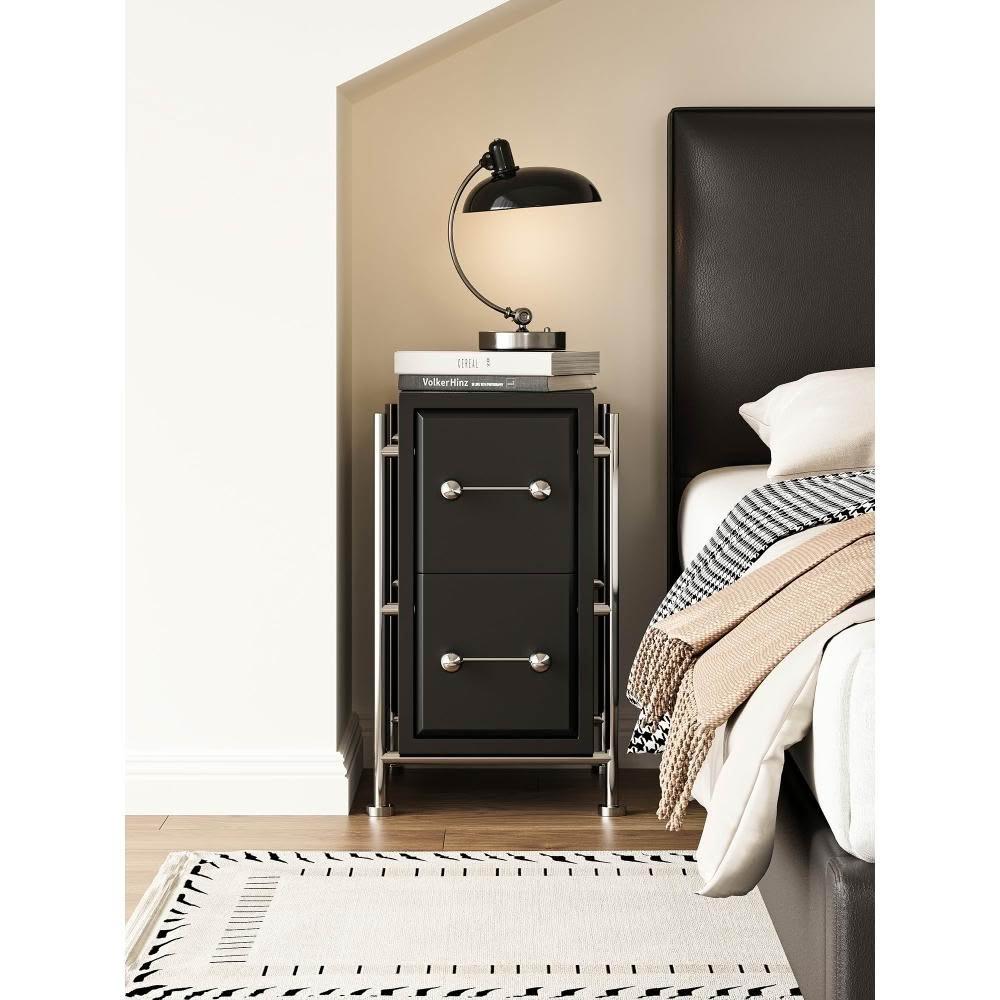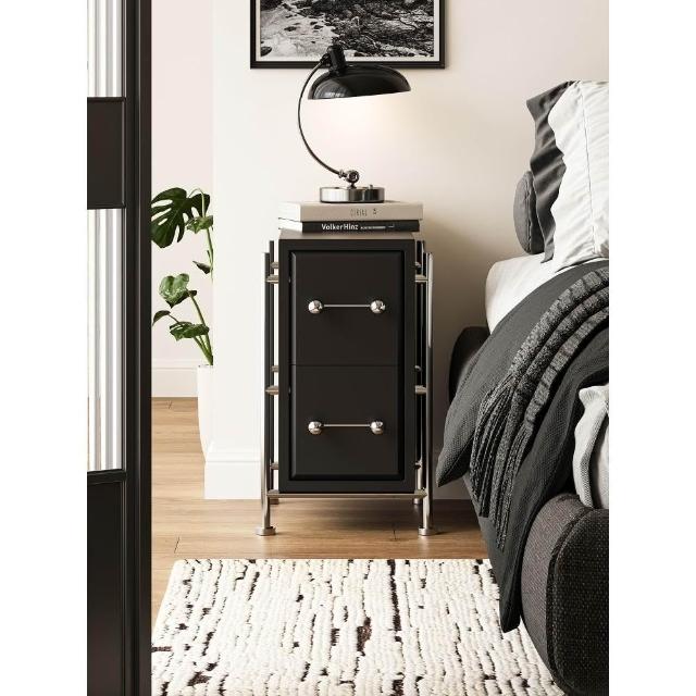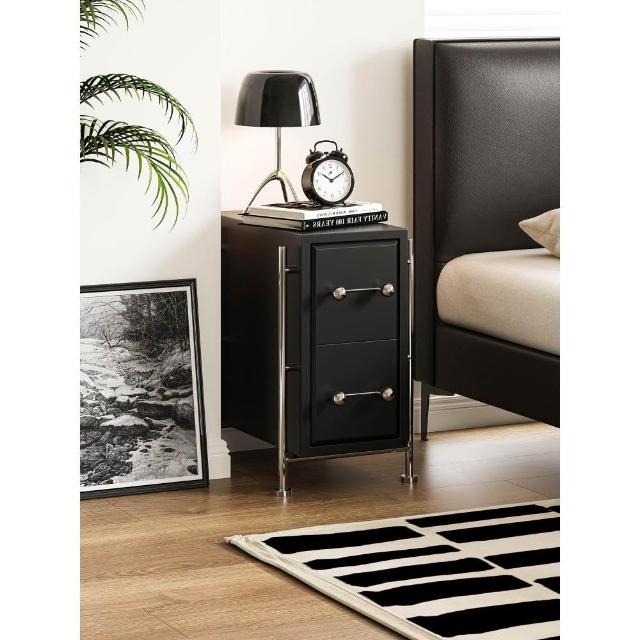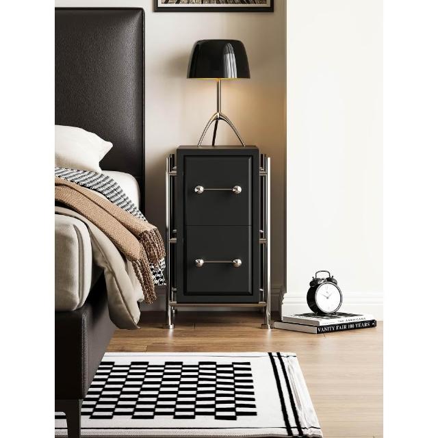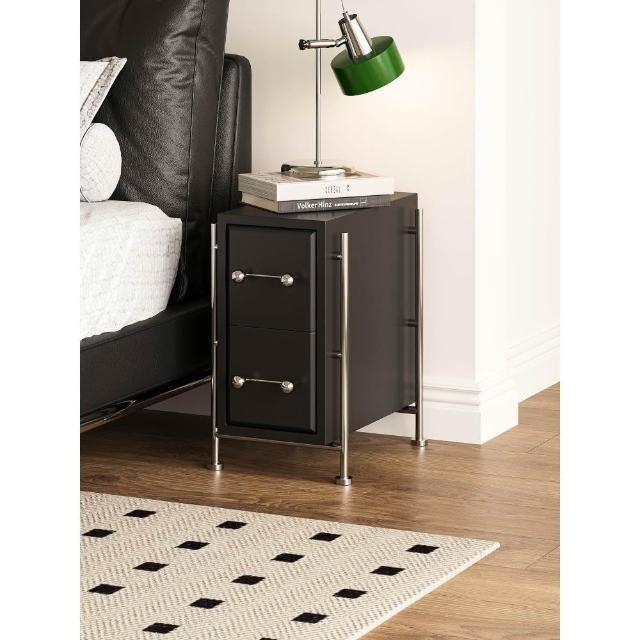 簡約現代雙層黑色床頭櫃設計師家用臥室床邊櫃小型置物儲物櫃