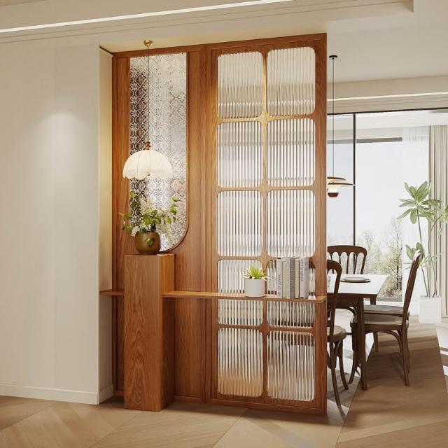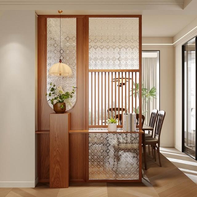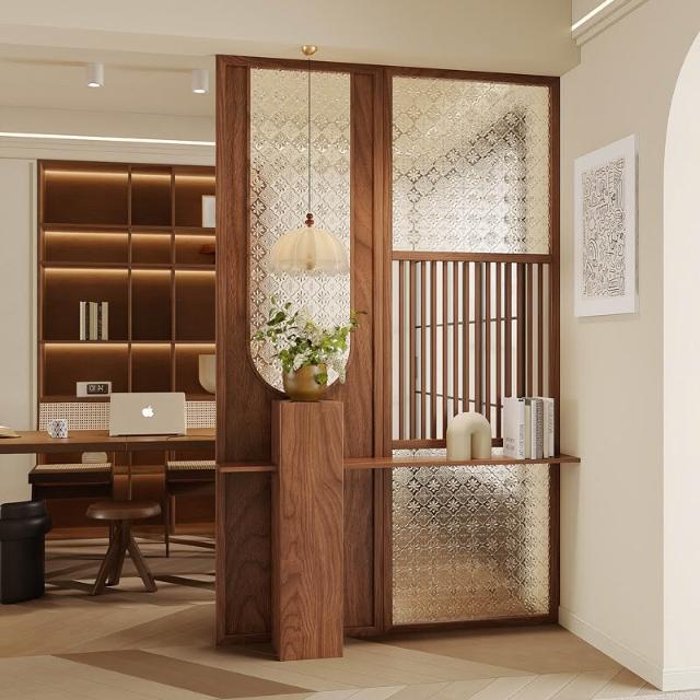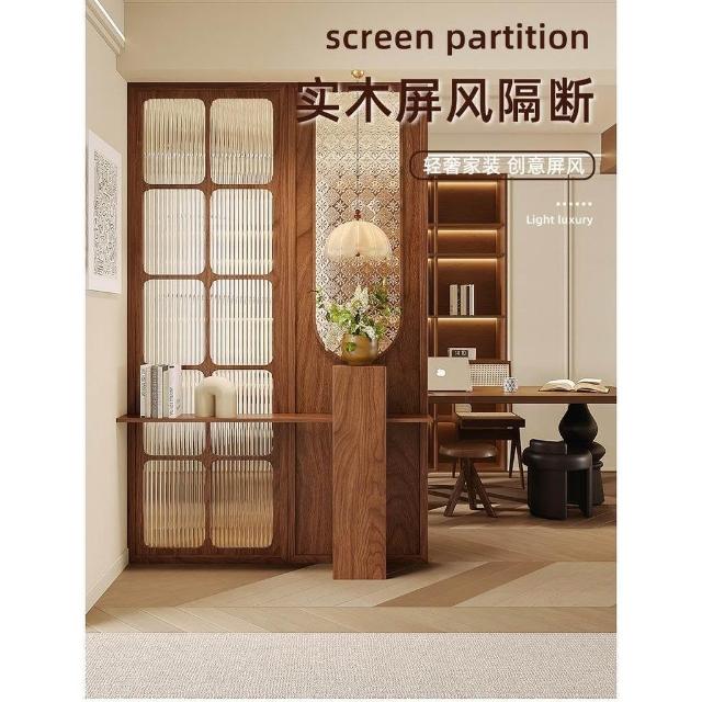 屏風隔斷 新中式客廳實木入戶遮擋 玻璃鏤空玄關辦公室正對門格柵