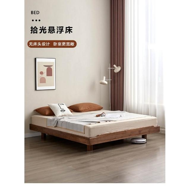 台灣熱銷 免運 北美黑胡桃木全實木懸浮床 無床頭榻榻米矮床架 臥室原木風雙人床 穩固靜音防潮防蟲 小坪數省空間百搭款