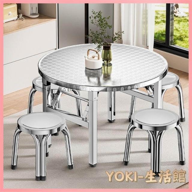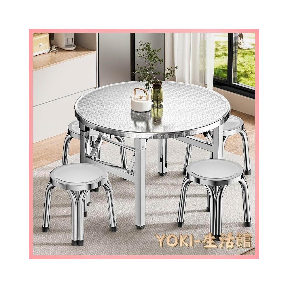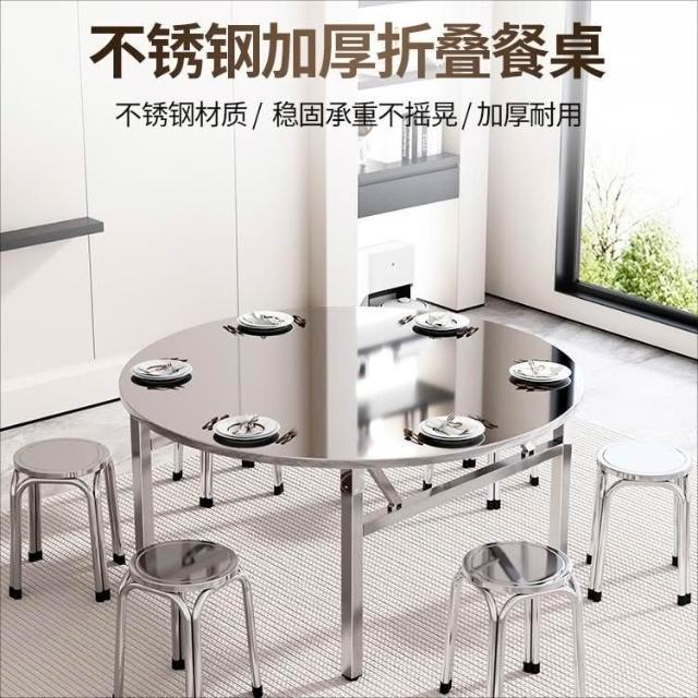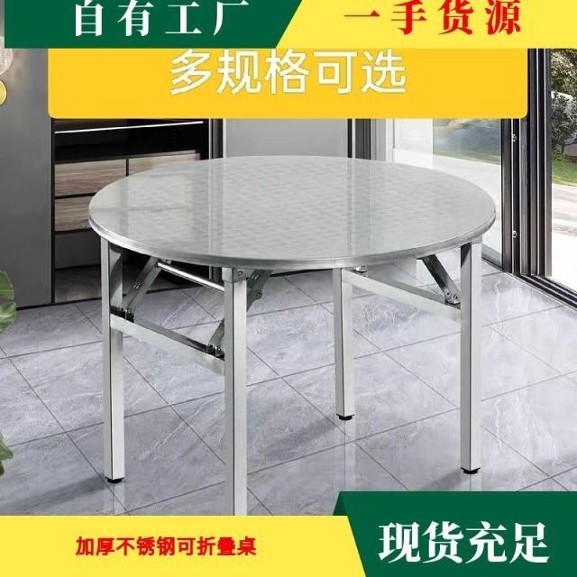 🔥熱銷新款 不鏽鋼桌 折疊桌 轉盤桌 家用餐桌 桌子 不鏽鋼摺疊桌子特厚可摺疊圓桌擺攤吃飯家用大排擋不鏽鋼桌子圓形