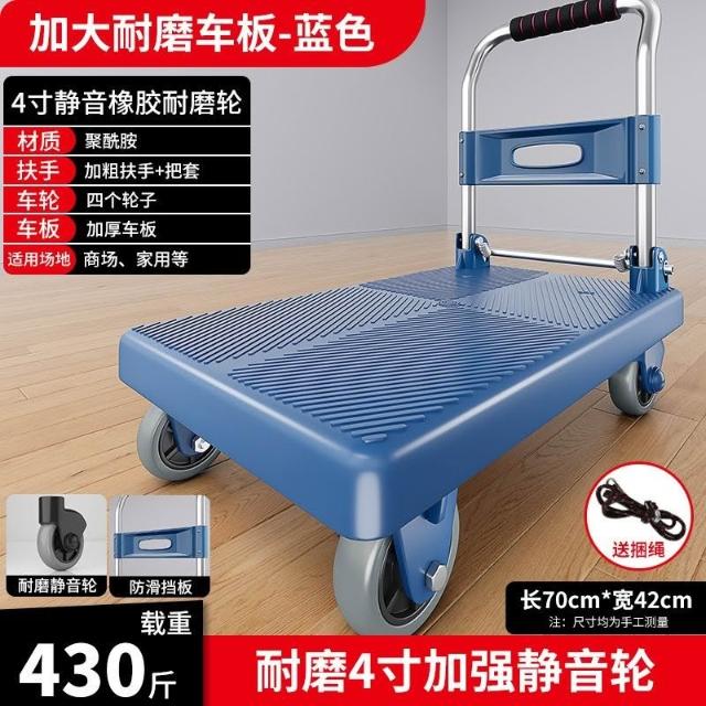 折疊手推車 免組裝 塑鋼推車 可報帳 司機物流載貨車 工具車 鋼闆小推車平闆車貨車手推車拉貨靜音折疊四輪拖車搬運車便攜拉