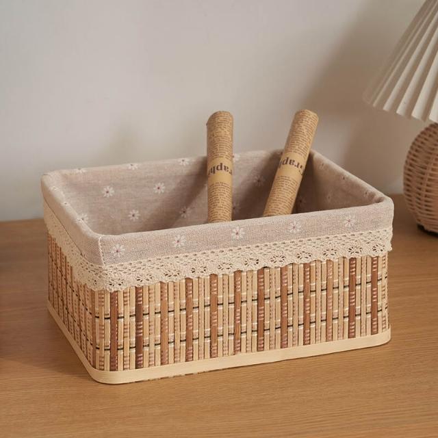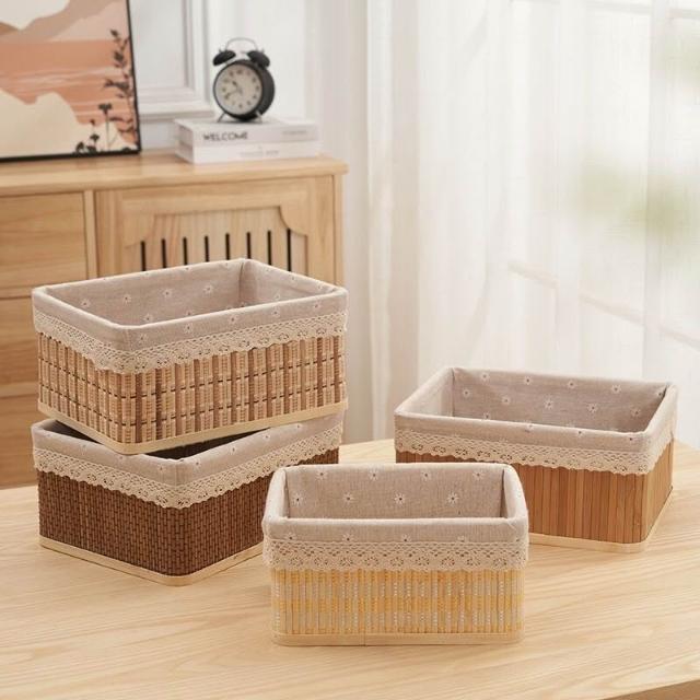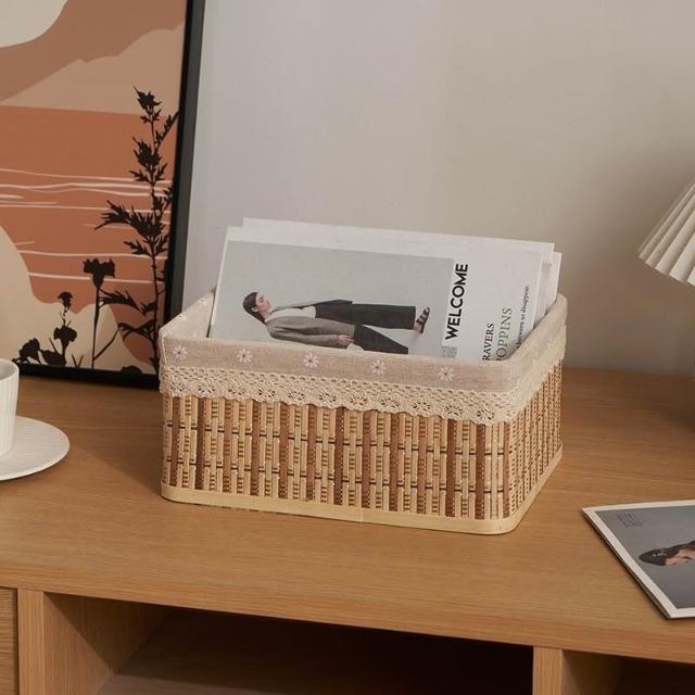收納籃 日式收納盒 收納框 日式儲物盒 桌上收納框 竹木柳藤桌麵茶幾玄關客廳收納筐超市賓館商場臥室廚房宿捨置物籃