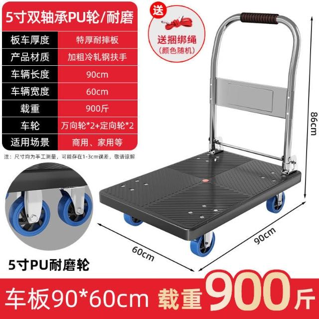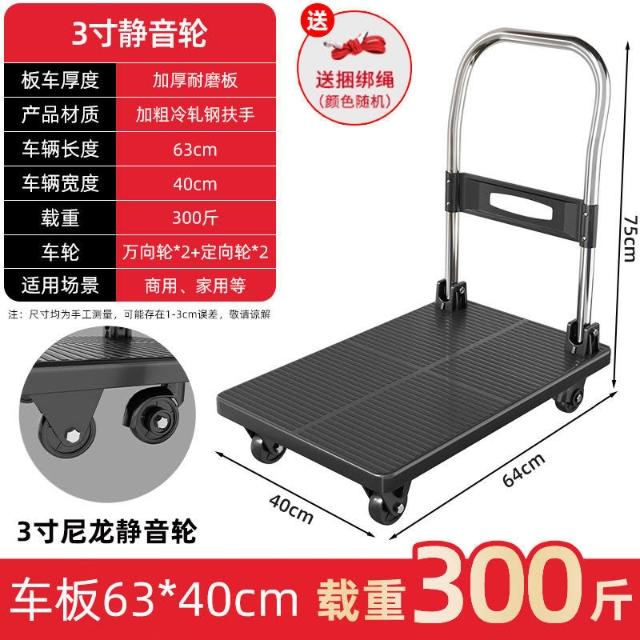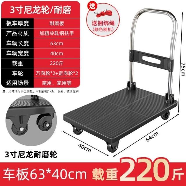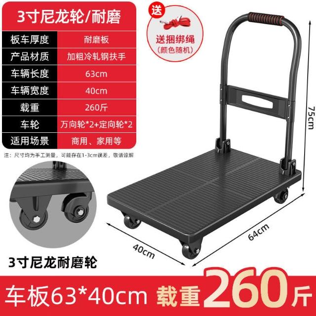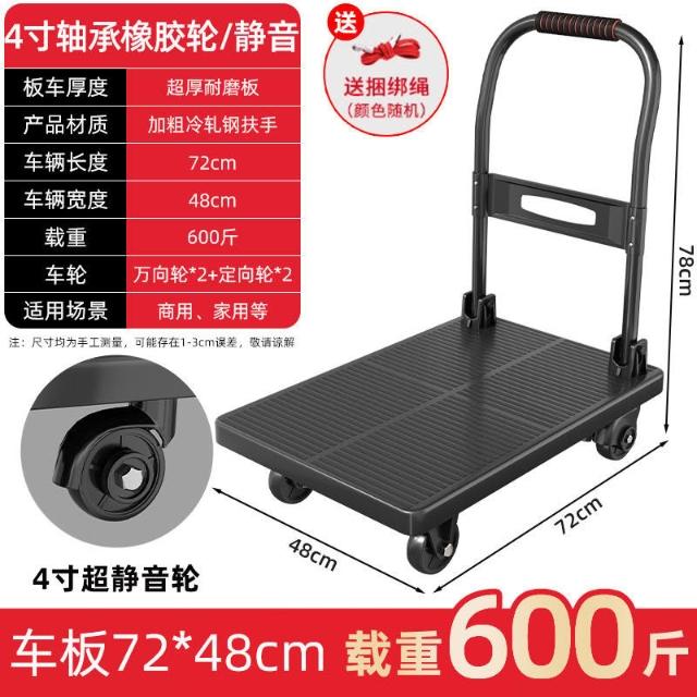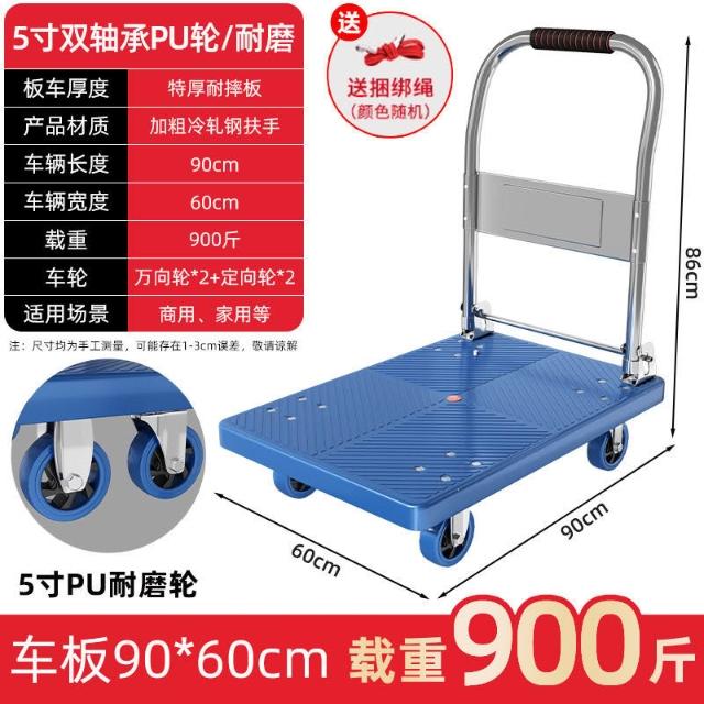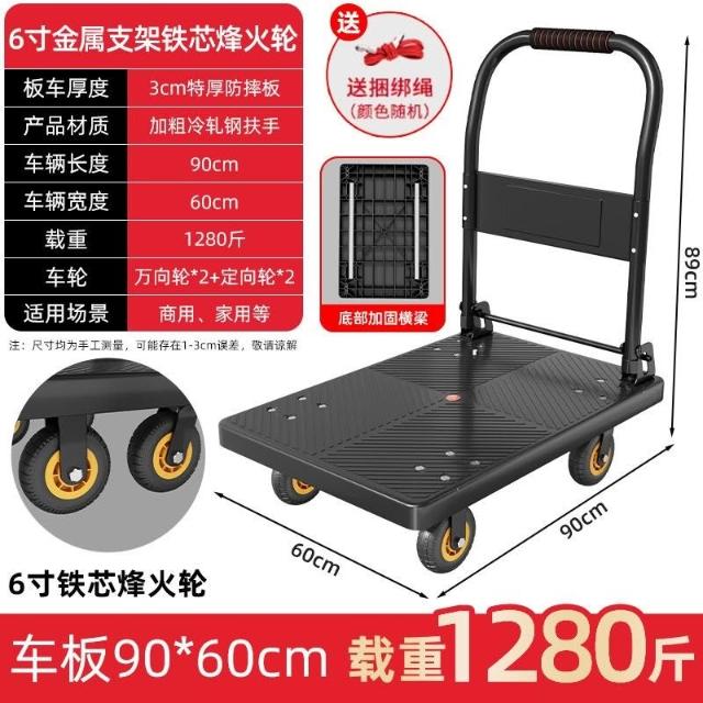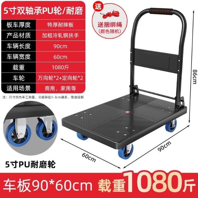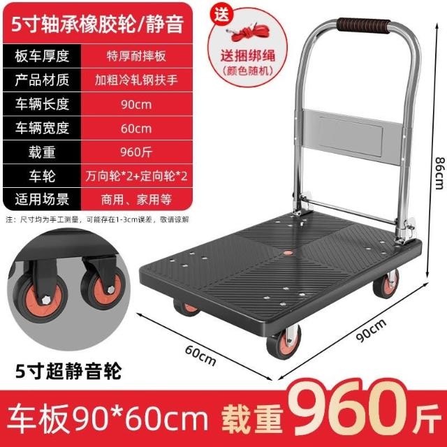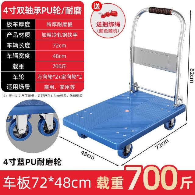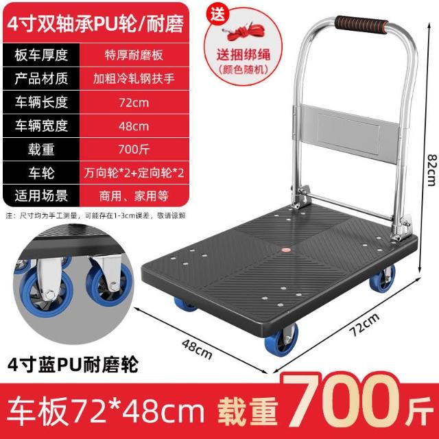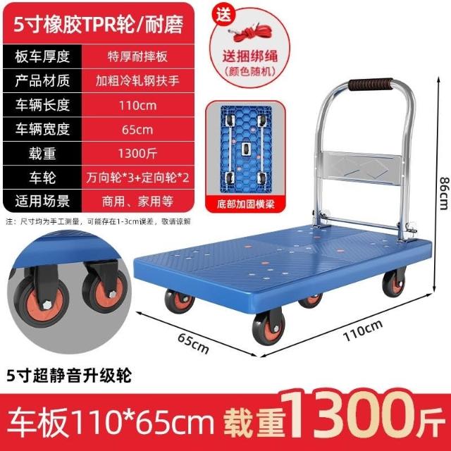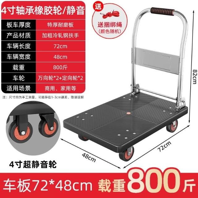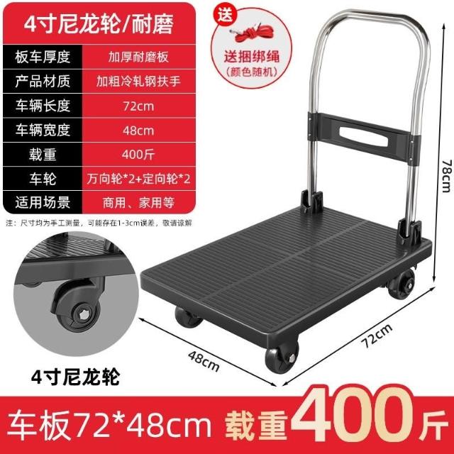 折疊手推車 免組裝 塑鋼推車 可報帳 司機物流載貨車 工具車 鋼闆平闆車靜音便攜小拉車拉貨可折疊搬運車加厚手推車倉庫小推