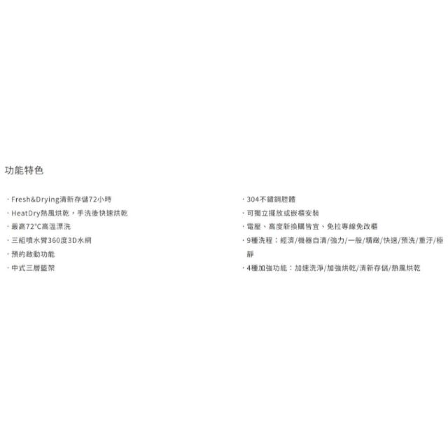 SVAGO VE7190 獨立式熱風烘乾洗碗機 可獨立擺放或嵌櫃安裝 清新存儲72小時 360度3D水網