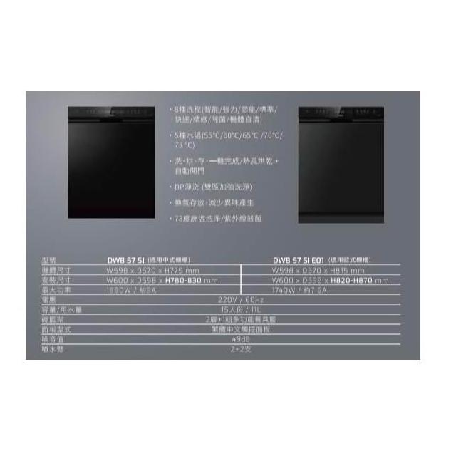 TEKADW8 57 SI 半嵌式熱烘存自動開門洗碗機 熱風烘乾 自動開門 8種洗程 5種水溫