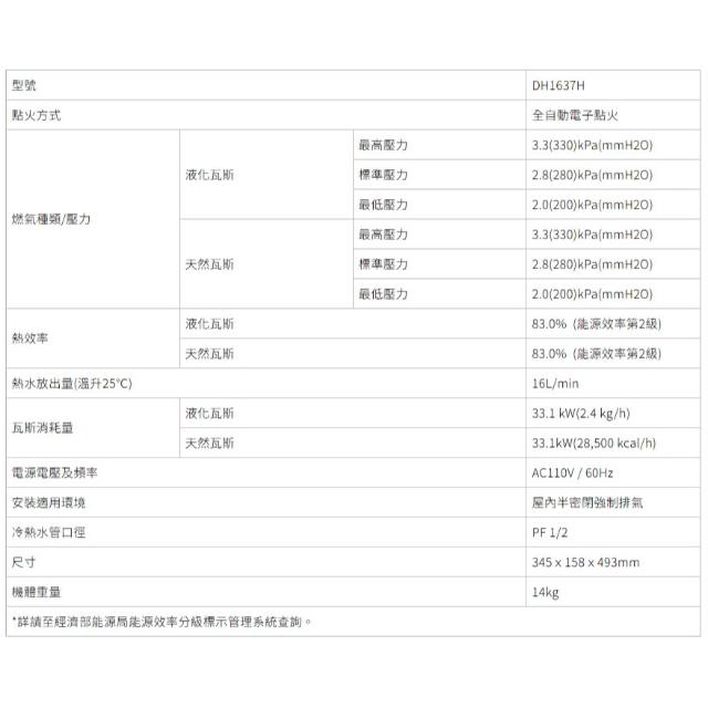 SAKURA 櫻花DH1637H 16L POWER四季溫智能恆溫熱水器 極致控溫 8大安全防護