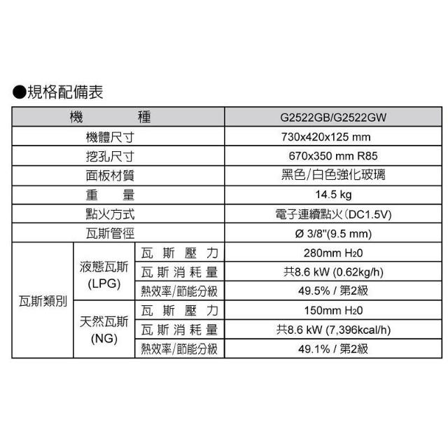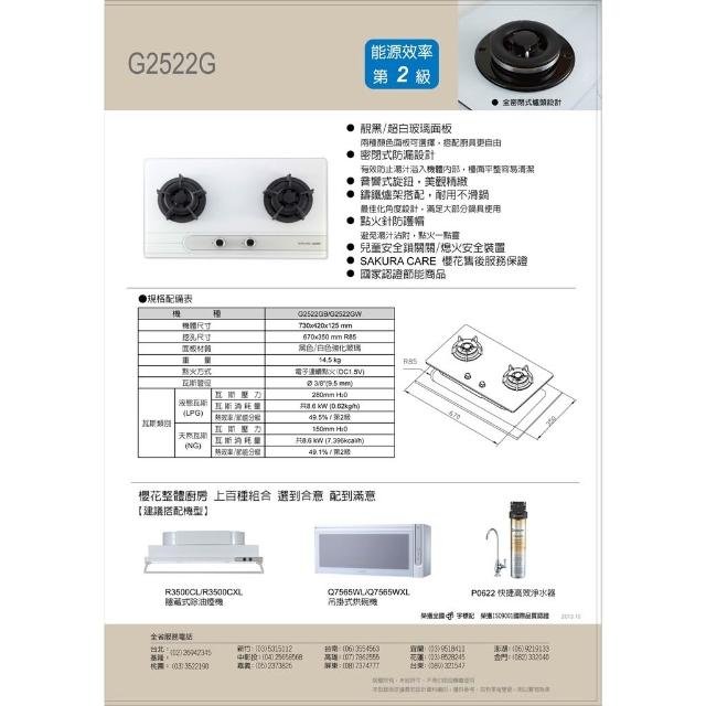 SAKURA 櫻花G2522B G2522BGB G2522BGW 玻璃材質 檯面式易清潔爐 2522