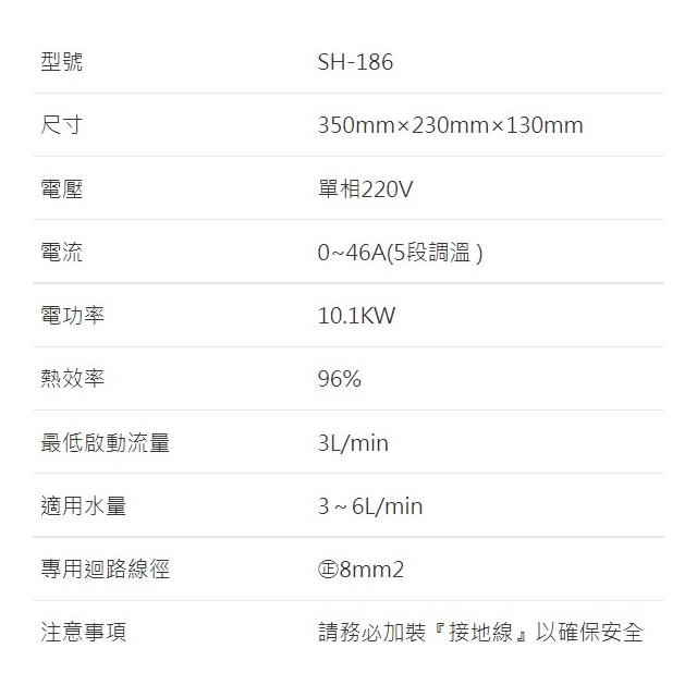 SAKURA 櫻花H186 五段調溫電熱水器 瞬間加熱熱水器 櫻花熱水器 SH-186過熱保護 漏電保護