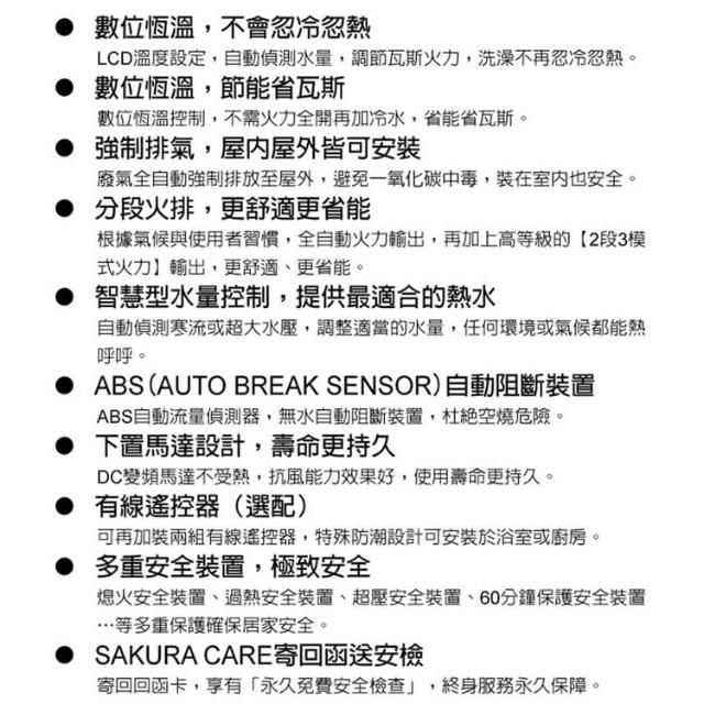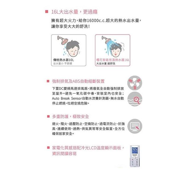 SAKURA 櫻花DH1670F 16L 智能恆溫熱水器 DH1670 智慧型水量調節控制 強制排氣設計