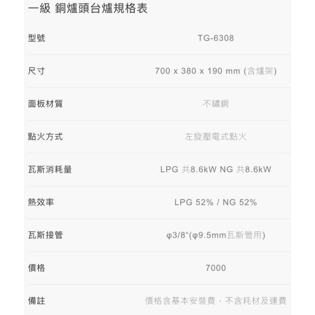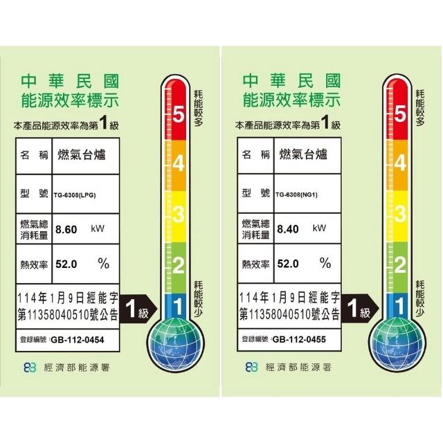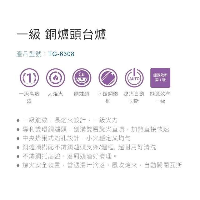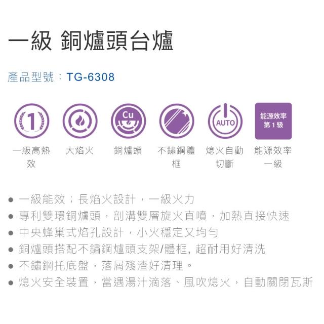 莊頭北TG-6308 一級銅爐頭台爐 瓦斯爐 一級能效 專利雙環銅爐頭 熄火安全裝置