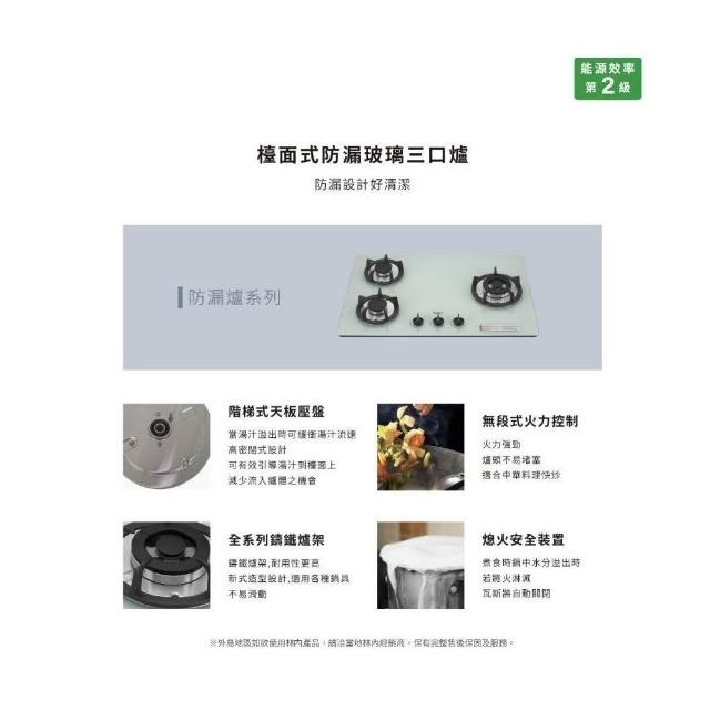 林內RB-302GH(BR/L)/(WR/L) 檯面式防漏玻璃三口爐 瓦斯爐 鑄鐵爐架