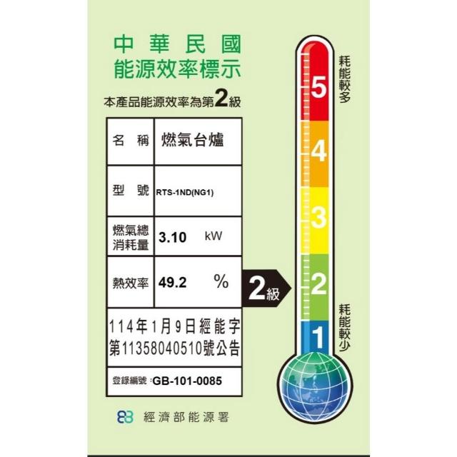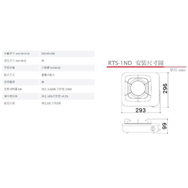 林內RTS-1ND 台爐式傳統不銹鋼單口爐 銅爐頭 壓電式點火 熄火安全裝置 日本原裝進口 台爐