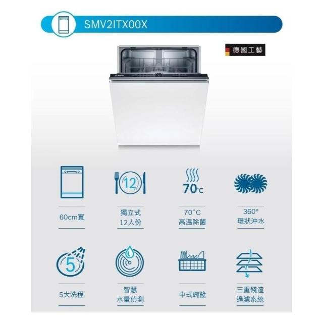 BOSCH 博世SMV2ITX00X 2系列 全嵌式洗碗機 60 cm 110V 12人份 波蘭製
