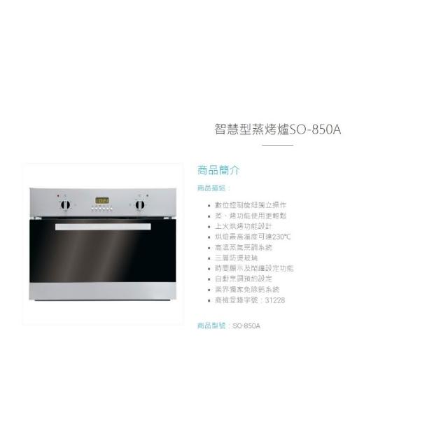 BEST 貝斯特智慧型蒸烤爐 SO-850A 崁入式 自動烹調預約 業界獨家免除鈣系統 34公升 不鏽鋼
