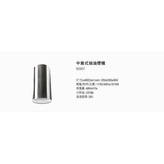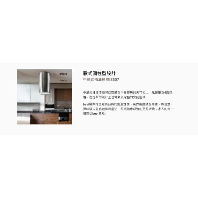 BEST 貝斯特中島式抽油煙機 IS507 歐式圓柱型設計除油煙機 高吸附不鏽鋼濾油網 三段風速 省電延遲關機