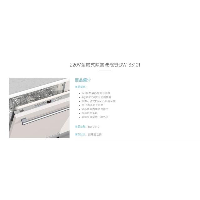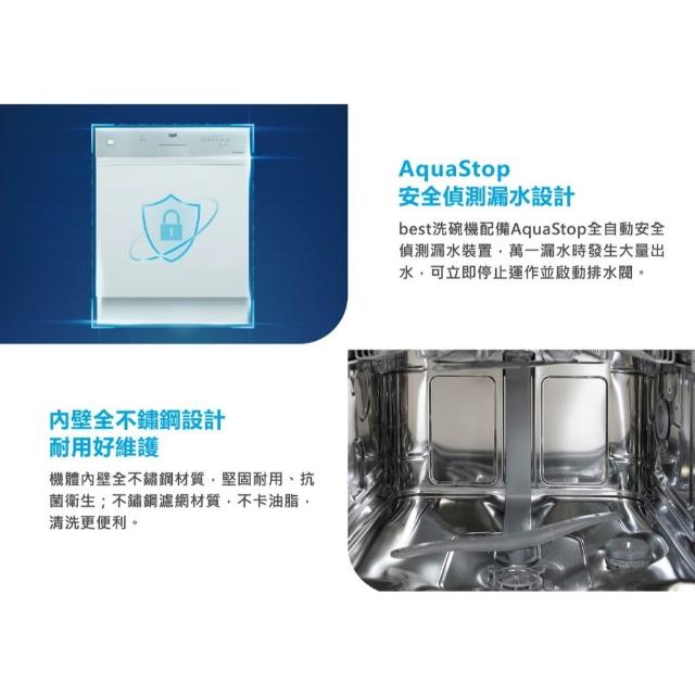BEST 貝斯特220V全嵌式除氯洗碗機 DW-33101 全不鏽鋼內槽 5+5種智慧節能組合 70°C高溫衛生殺菌
