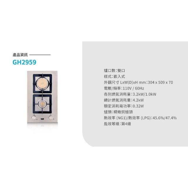 BEST 貝斯特GH2959 不鏽鋼雙口高效能瓦斯爐 多段式火力 檯面爐 特殊凹槽設計 油漬湯汁易清理