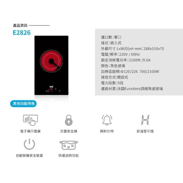BEST 貝斯特嵌入式單口電陶爐 E2826 觸控式面板 9段火力 單口爐 黑色玻璃 220V