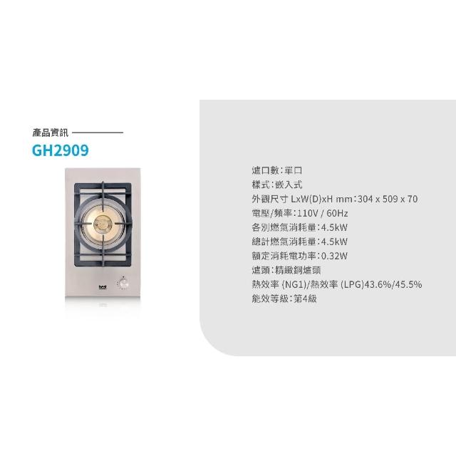 BEST 貝斯特不鏽鋼單口高效能瓦斯爐GH2909 精密鍛造銅爐頭 多段式火力 油漬湯汁易清理 能效四級