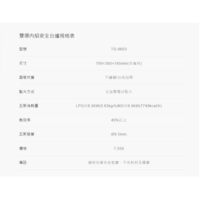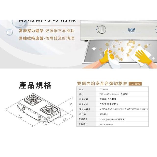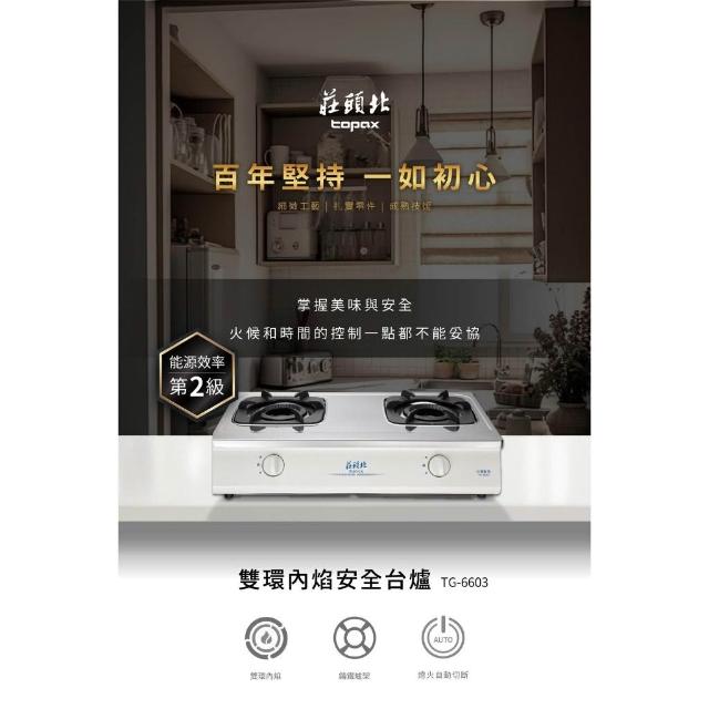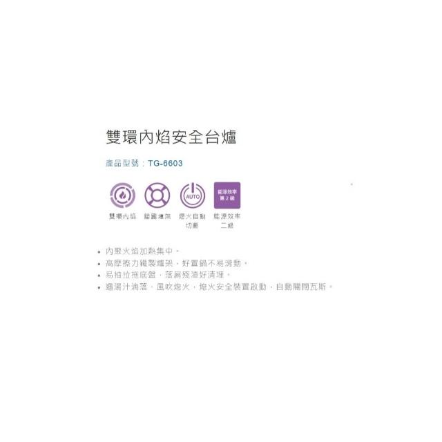 莊頭北TG-6603 雙環內焰安全台爐 內聚火焰加熱集中 易抽拉拖底盤 熄火安全裝置 耐用耐汙 二級能效