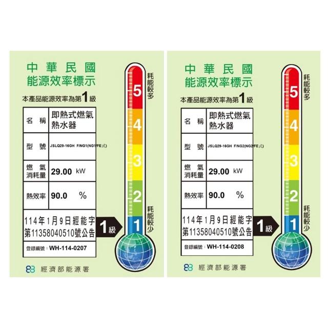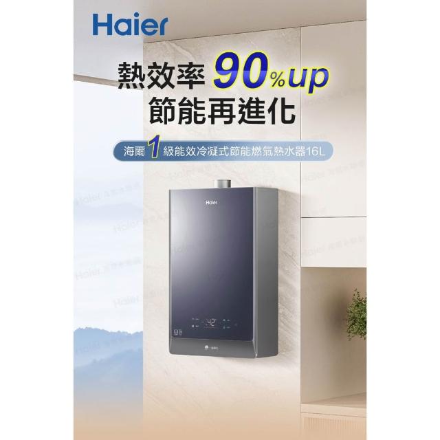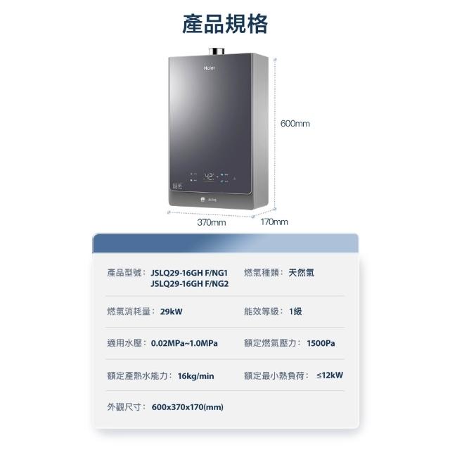 Haier 海爾16L冷凝式節能燃氣熱水器 JSLQ29-16GHF/NG1 天然氣 一級能效 五段火排 熱效率90%up