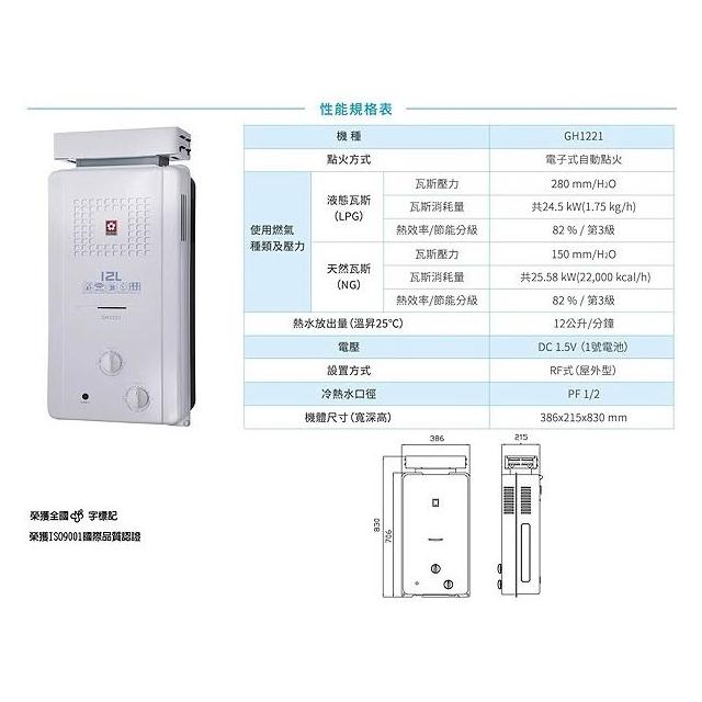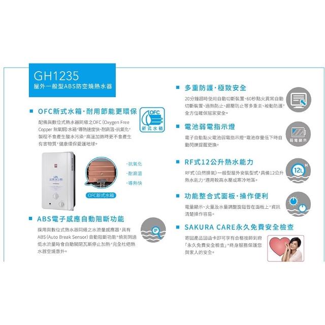 SAKURA 櫻花GH1221 12L抗風型屋外傳統熱水器 GH1235 12L屋外傳統熱水器