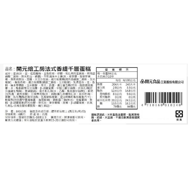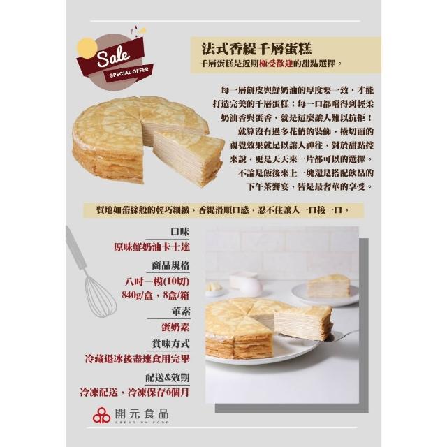 BOGARI 開元食品法式千層派蛋糕|贈法芙娜61%巧克力棒|8吋卡士達|千層蛋糕|10切|840g/盒
