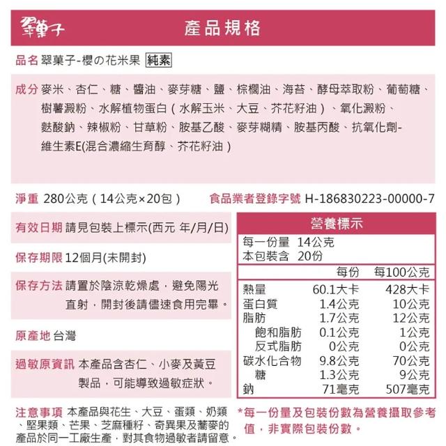 豆之家 翠果子|櫻の花米果禮盒 280g|純素|翠菓子(14gx20包/盒)