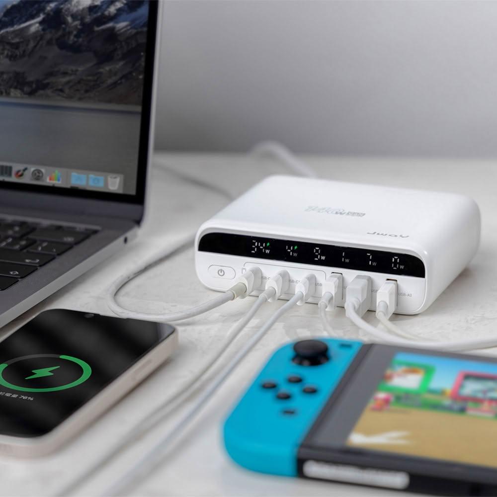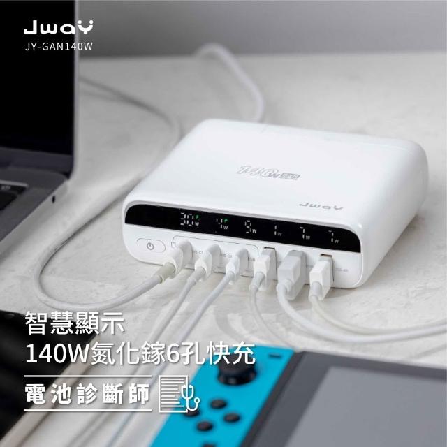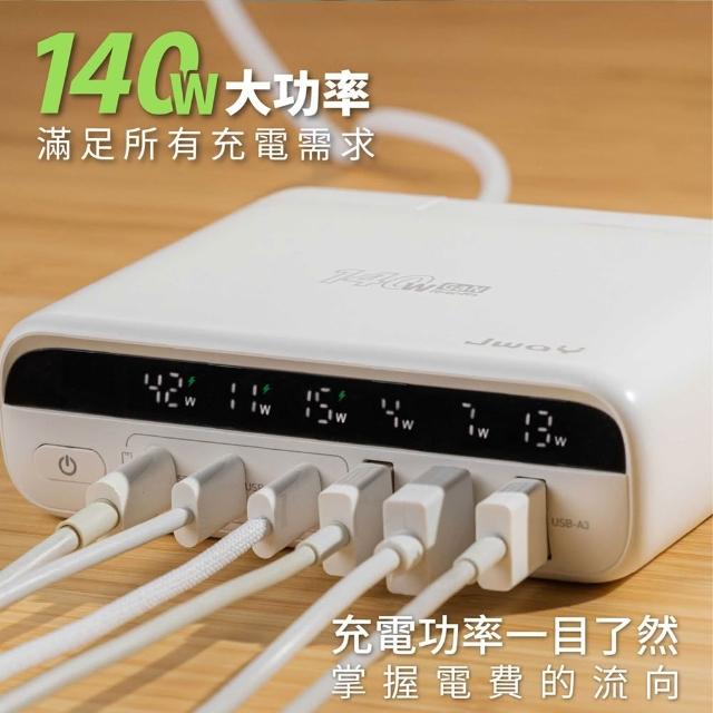 JWAY智慧顯示140w氮化鎵6孔快充 JY-GAN140W|充電器 快充 快充頭 多孔充電器 萬用充電