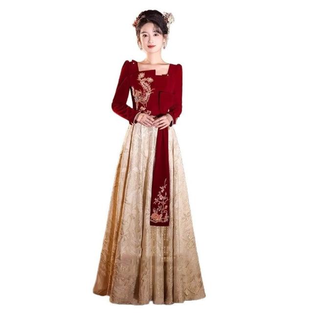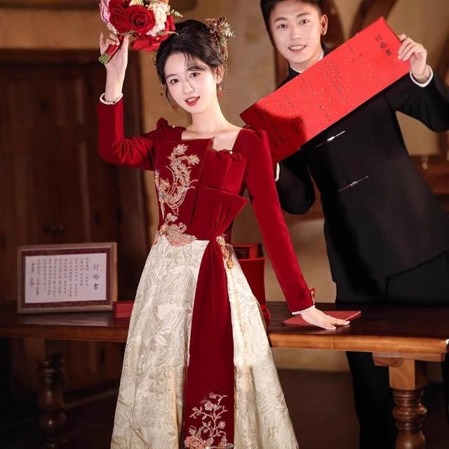 PEZK優選 敬酒服新娘2025新款長袖紅色新中式禮服女結婚回門出閣宴婚服