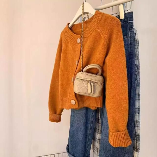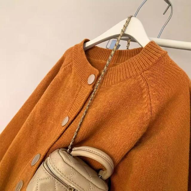 PEZK優選 南瓜橘色毛衣外套女冬季外穿高級感慵懶軟糯針織開衫加厚短款上衣