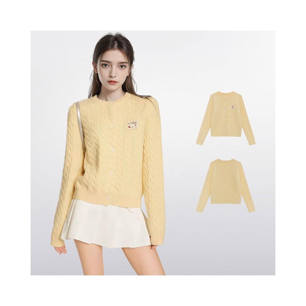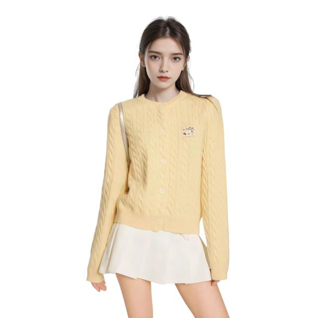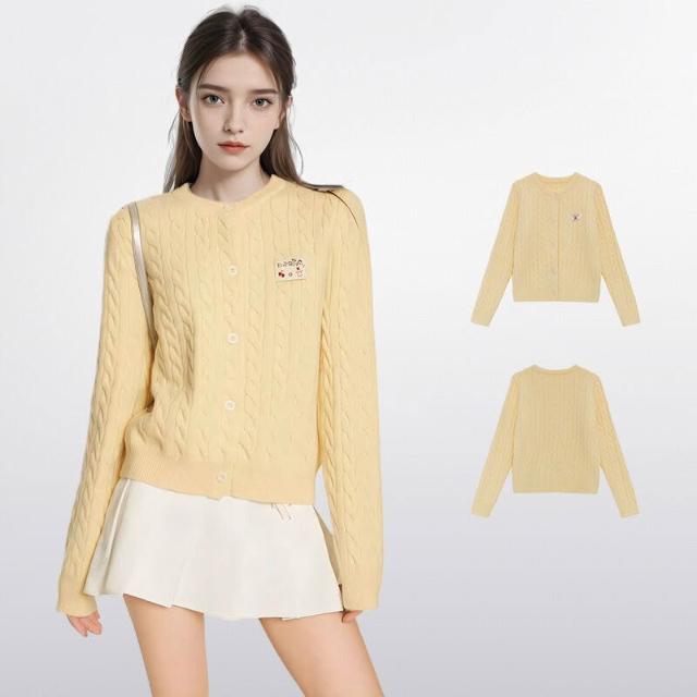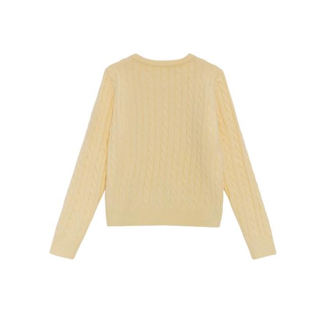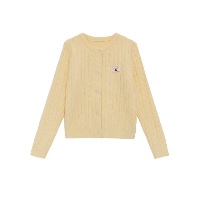 PEZK優選 黃色正肩麻花針織開衫女秋季秋冬毛衣修身慵懶風外套針織衫小個子