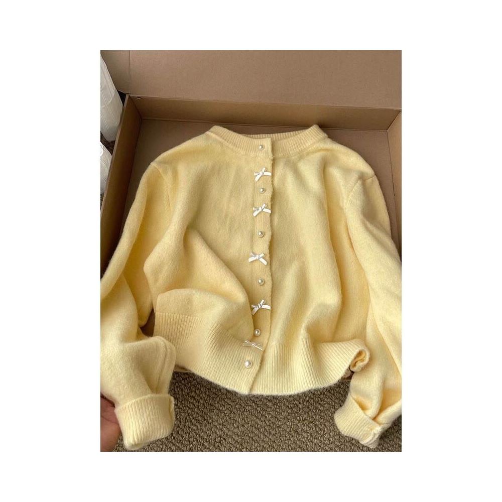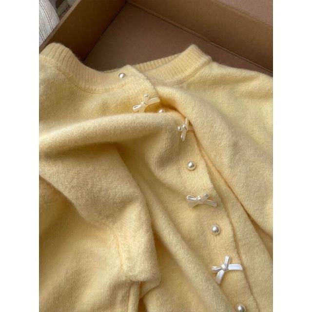 PEZK優選 CHao級推薦!高端鵝黃色毛衣針織衫女秋季2025年新款長袖開衫上衣