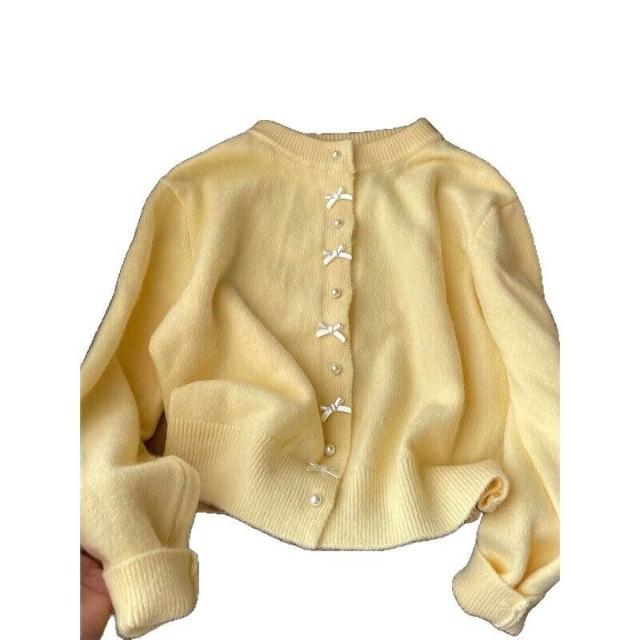 PEZK優選 CHao級推薦!高端鵝黃色毛衣針織衫女秋季2025年新款長袖開衫上衣