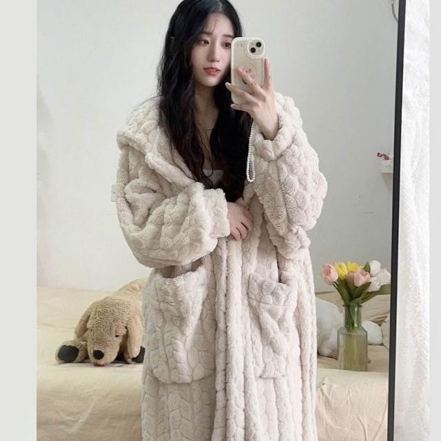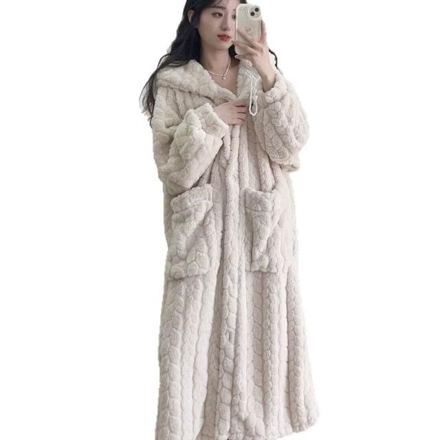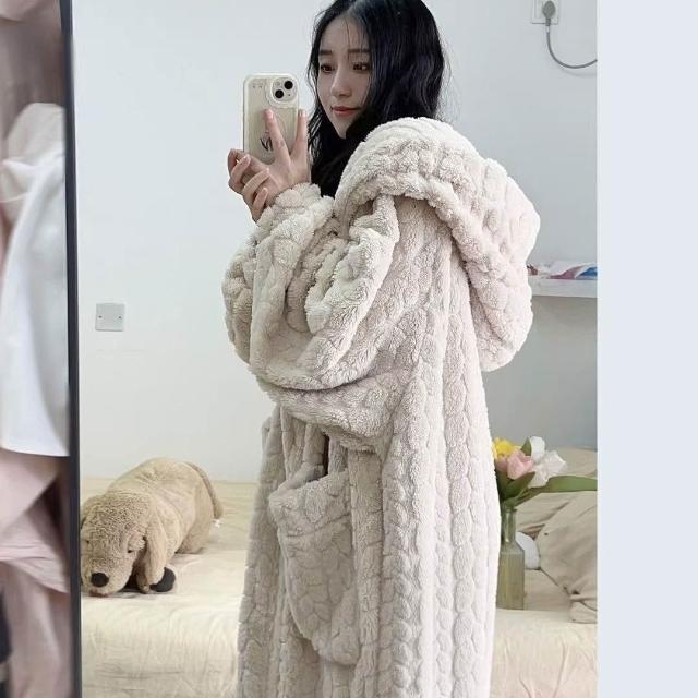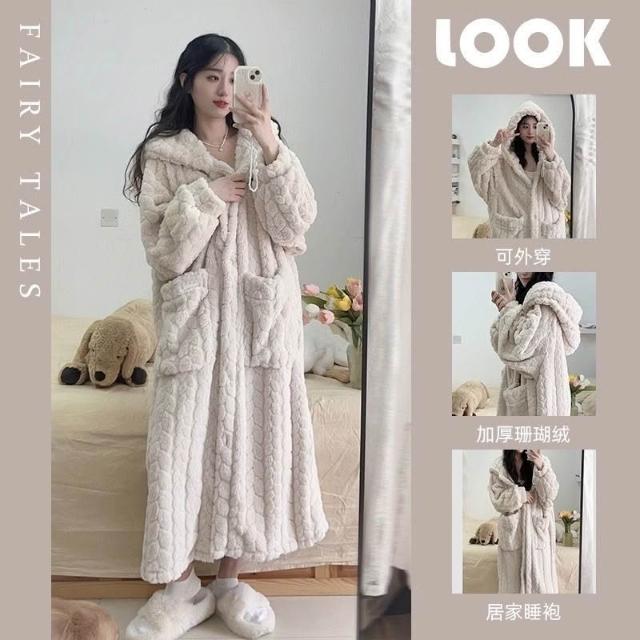 PEZK優選 秋冬季睡衣女法蘭絨睡袍女珊瑚絨長款可愛甜美韓版家居服懶人睡袍