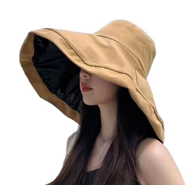 PEZK優選 超大帽檐防曬帽海邊防紫外線upf50+遮陽帽子可折疊黑膠漁夫帽女