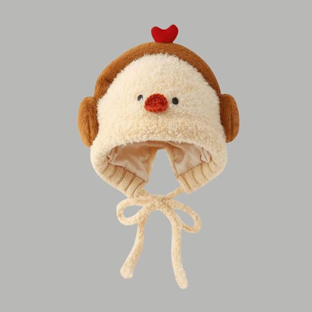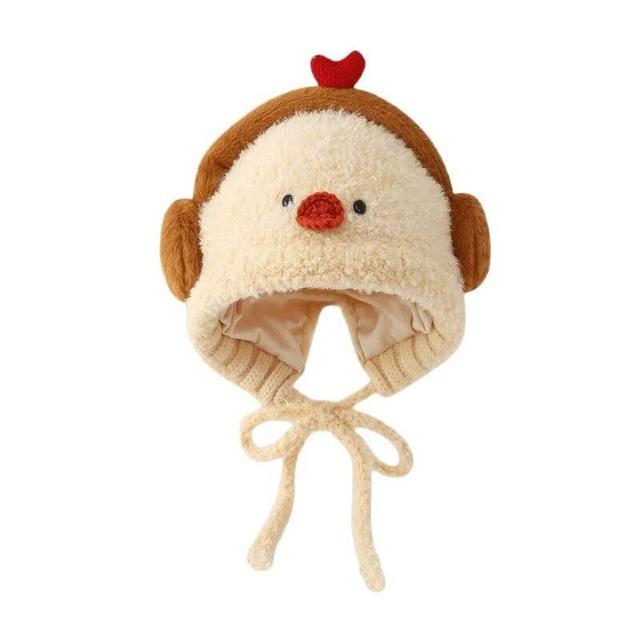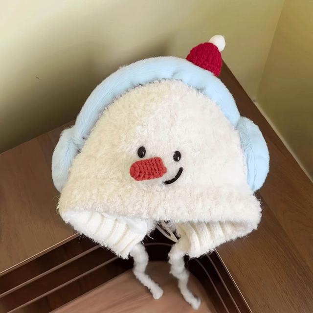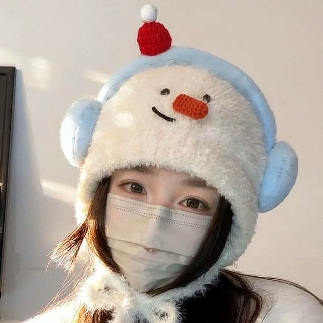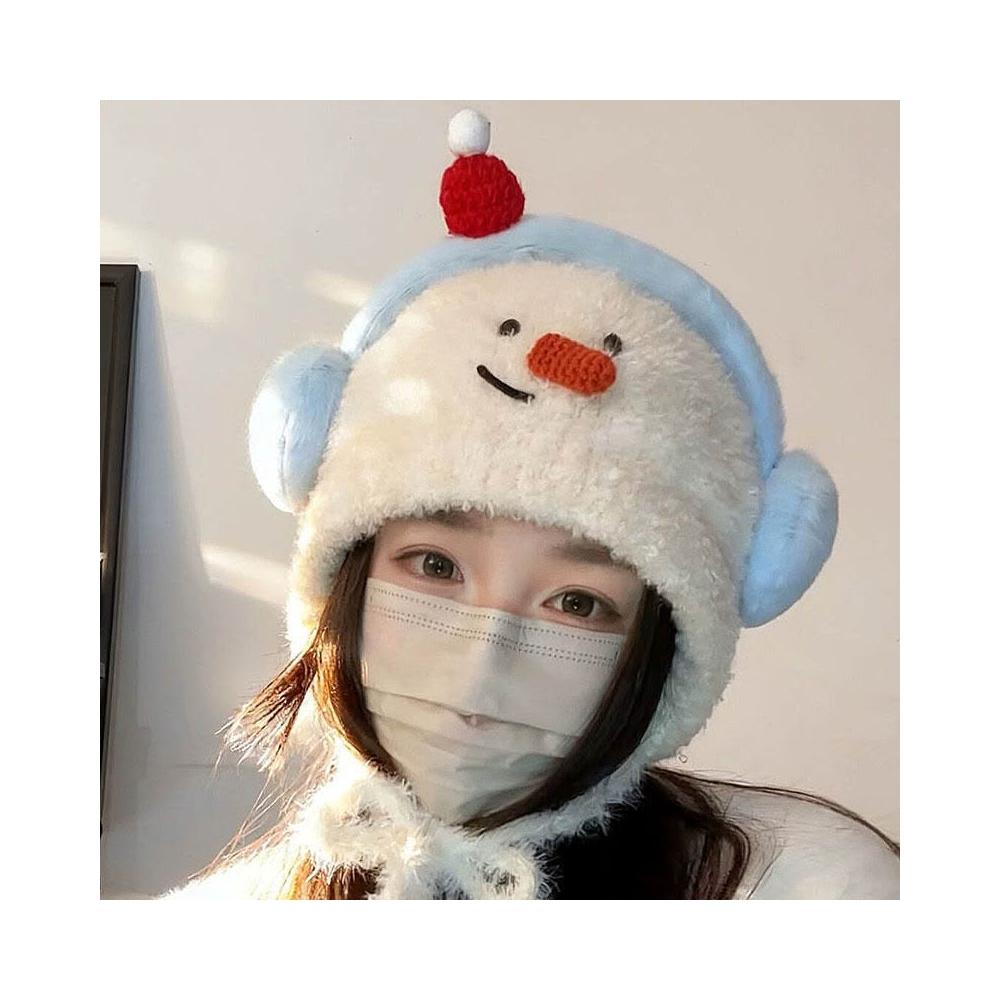PEZK優選 可愛毛絨雪人耳機針織帽卡通小雞毛線帽秋冬季甜美百搭保暖護耳帽