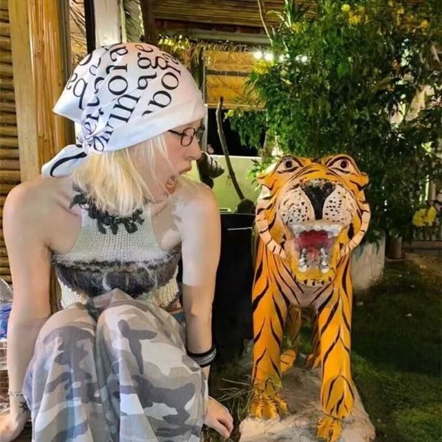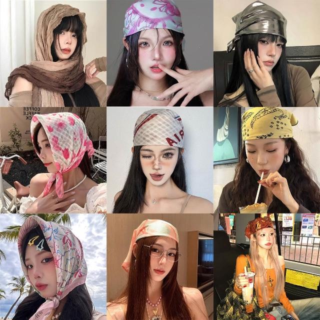 PEZK優選 美式y2k千禧辣妹包頭頭巾嘻哈街頭潮酷方巾新款薄款簡約發帶發箍