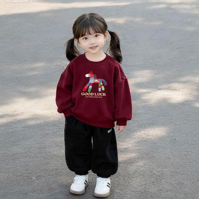 PEZK優選 2026馬年卡通親子裝可愛印花加絨加厚圓領衛衣喜慶大紅色母女裝潮
