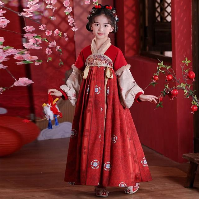 PEZK優選 中式服女童冬款古風古裝拜年服女加絨中國風唐裝演出過年服
